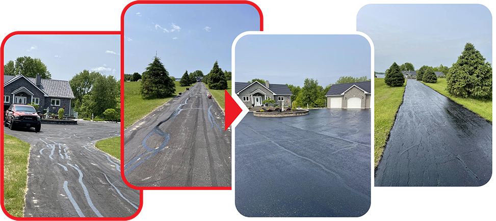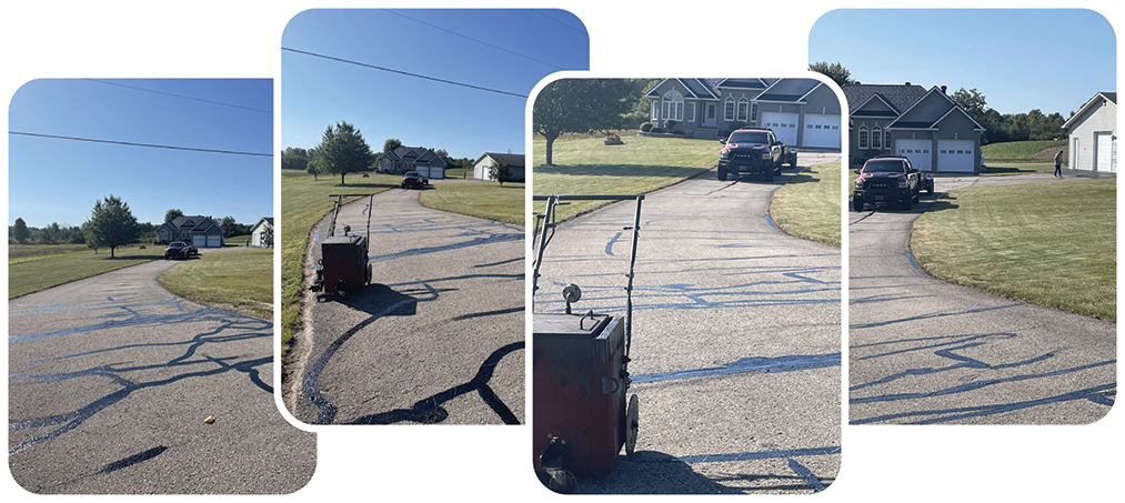 Trim edges, clean driveway, repair cracks on edges and over culvert with hot crack filler and seal with asphalt-based sealer.