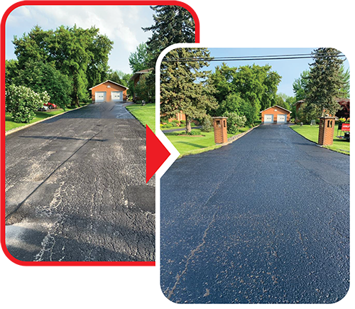 Clean driveway and seal with asphalt-based sealer.