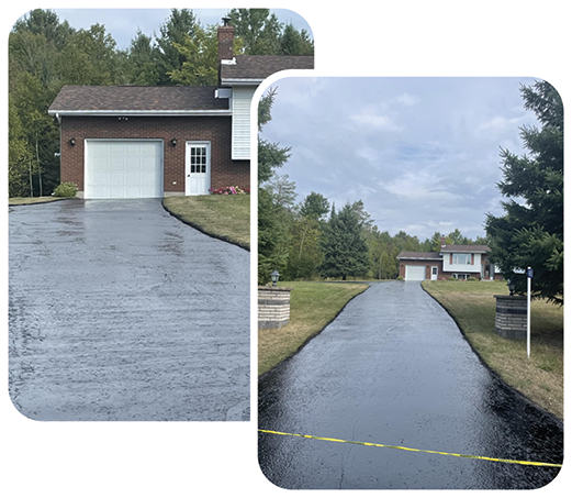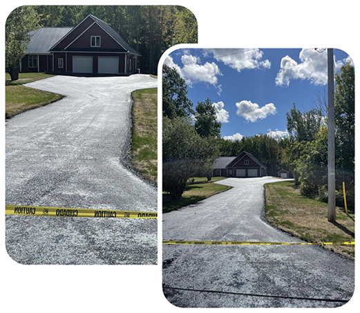 Edges cleaned, all heavy gravel swept and removed from driveway, all cracks cleaned out, hot crack filled and sealed with asphalt-based sealer.